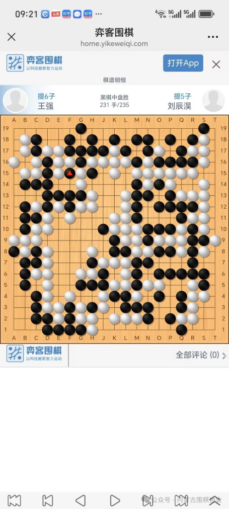 第一轮比赛我对包头的姜兰毅,在棋王赛时张荣利介绍过他,说每次比赛成绩都不错,我知道这盘不好下。白昕李东波和孟哥都对上了少年棋手,并且都轻松过关。我的布局感觉很顺畅,一直觉得不错,信心满满的,但局后复盘却发现,局势远没有我想的那样好,是个细棋局面。在我对他即将封口的中腹进行渗透时,他出现了严重的误算,致使我在中央拔了朵花,实空失衡,虽然下到终局,但我把优势保持住了。