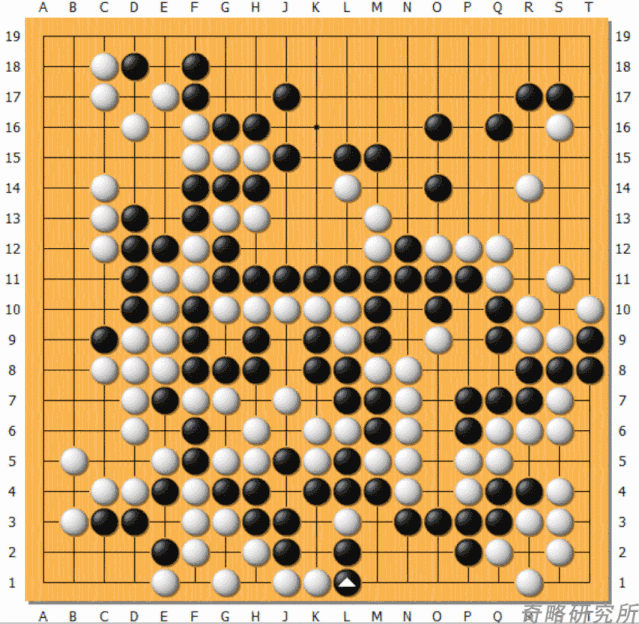 在右下短暂的战斗之后,双方偃旗息鼓,开始圈地运动。而实战争夺地盘的手法,黑、白皆小错误不断。先是李昌镐第94手挡过缓,失去先机;随后林海峰在中腹面对白方的冲击应对失当,转换以后稍亏,又将主动权还给李昌镐。之后的小官子,林海峰利用左下的劫争扳回一城,形势变得非常接近。